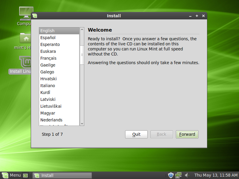 3) Try / Install Linux Mint